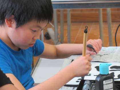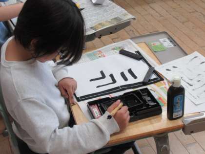 筆の入りや、とめ、折れ、はらいの練習に取り組みました。