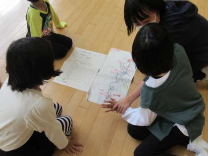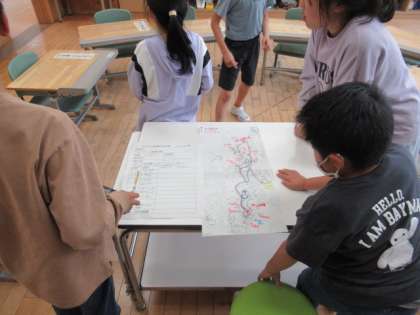 後日行われるスマイル班遠足。その際に回るコースを、各スマイル班で決めました。