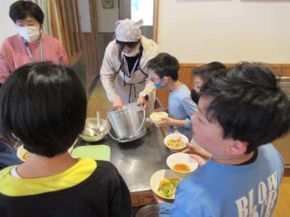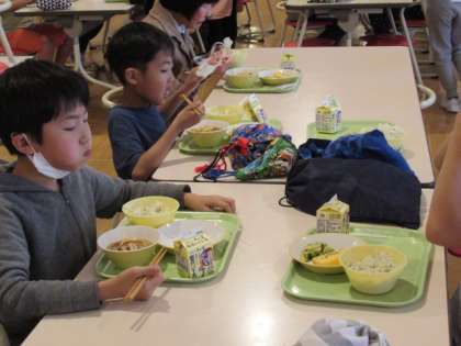 今日も、みんなしっかり食べています。子供たちには、うどんが人気でした。