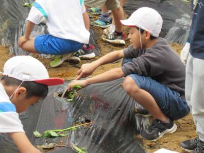 サツマイモが大きく育つように、お世話しましょう。