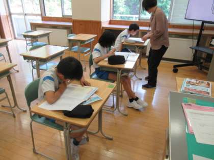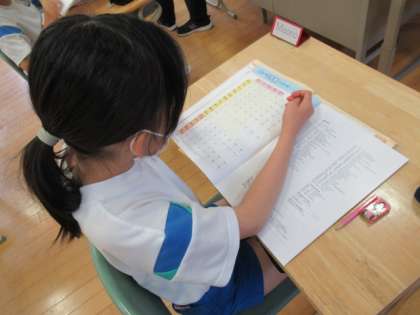 地名を書くために、ローマ字を確かめています。