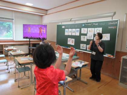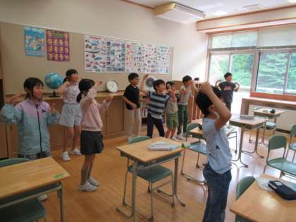 アルファベットダンスを、ノリノリで踊る子供たちです。