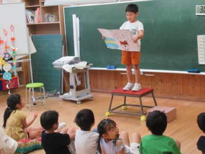 スマイル班遠足の中で、1年生の自己紹介タイムが設けられています。自分の名前、好きなもの、好きなこと等を、しっかり自分の言葉で伝えます。今日は、その練習に取り組みました。一人一人、しっかり、はっきりお話しできています。