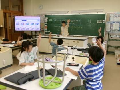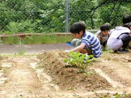ホウセンカ、ヒマワリ、オクラ、ピーマンを育てています。どれくらい成長したかを観察し、気づいたことを聴き合いました。