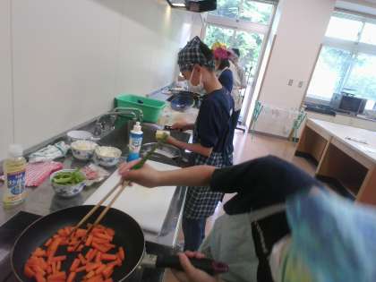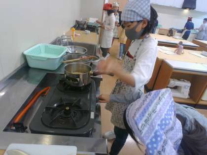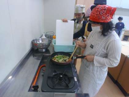 5年生は茹で料理、6年生は炒め料理に挑戦しました。班のメンバーと協力して手際よく活動していました。
