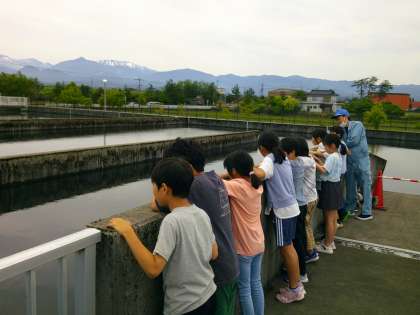 室内で学習した後、実際の施設を見学しました。見学の最後には、できたての水道水を味わう子供たちでした。「いつもの水道水よりおいしい」「できたてだから、おいしい」という声がいくつも上がりました。手間をかけて作られる水道水を、大切に使いたいという気持ちも高めていました。