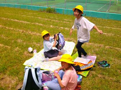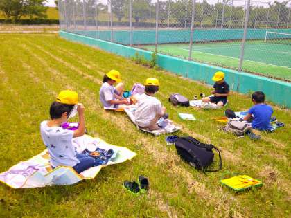 浄水場を見学した後、クリーンセンターに向かいました。昼食は、クリーンセンター近くの広場で食べました。みんな、おいしそうに食べていました。