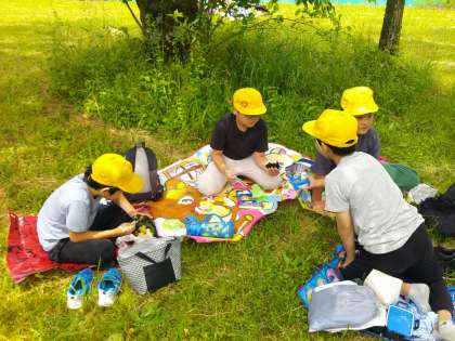 浄水場を見学した後、クリーンセンターに向かいました。昼食は、クリーンセンター近くの広場で食べました。みんな、おいしそうに食べていました。