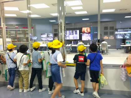 クリーンセンターにある全ての機械を管理する中央制御室、発電機等、事前に資料では見たことあるものの、その迫力や働く人たちの真剣さ等を目の当たりにして、子供たちも真剣に見入っていました。
