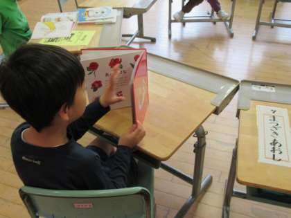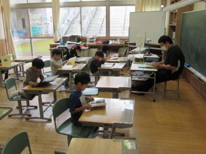 月曜の朝の時間は読書から始まります。先生も子供たちと一緒に読書を楽しんでいます。落ち着いた一週間の始まりです。