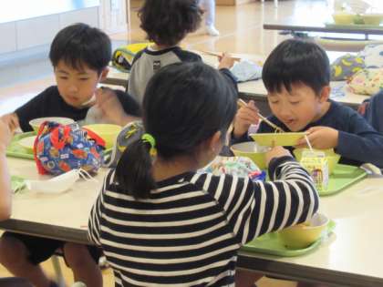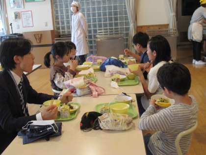 今日から、教育実習の先生も一緒に食べています。