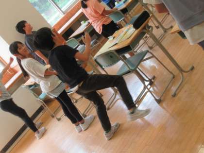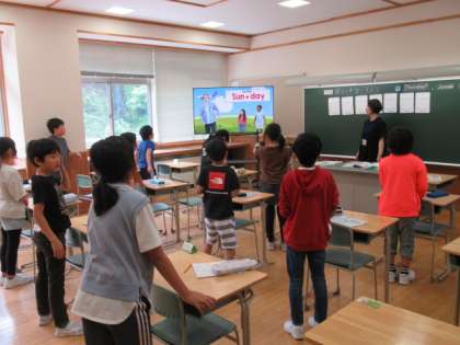 チャンツのリズムにのりながら、曜日の発音を楽しむ子供たちです。