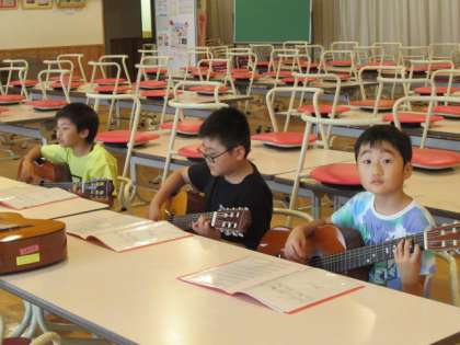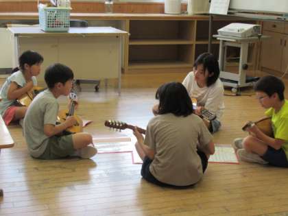 水曜日は、マンドリン活動の日です。4月から始めた4年生も、ずいぶんしっかり弾くことができるようになってきました。リーダーとしての6年生も立派です。