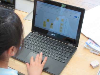 自分の伝えたいことを文章にまとめます。今日は、端末を用いて文の構成を整理していました。