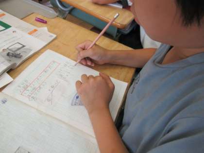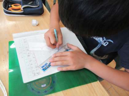 大きな角度のはかり方を考えました。分度器を手にして、試行錯誤する子供たちです。