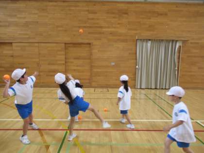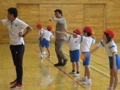 3限目は、下学年の子供たちが指導を受けました。はじめは、ボールをつかむこともおぼつかない様子でしたが、どんどんしっかり投げることができるようになっていきました。今日教えていただいたことを、これからも積み重ねていけるといいですね。