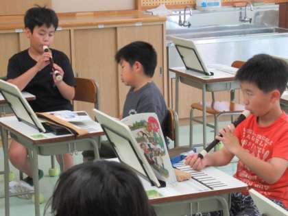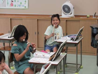 リコーダーに挑戦。うまく音が出せたかな。