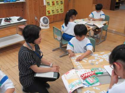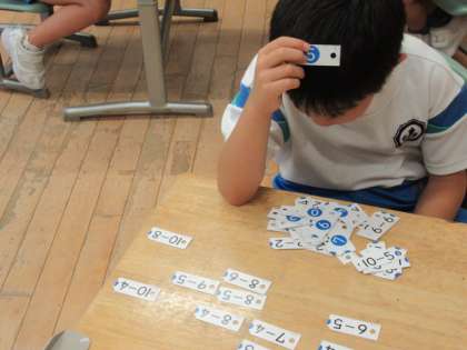 今日は、ひきざんの学習に計算カードを使って取り組みました。