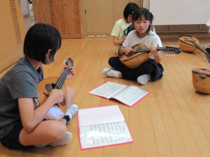 毎週水曜は、マンドリン活動の日です。上学年が下の学年の子供たちに指導しています。先日開催された、エンジョイスクールコンサートの際に演奏した曲とは違う曲の練習に取り組んでいます。お披露目の日が楽しみです。
