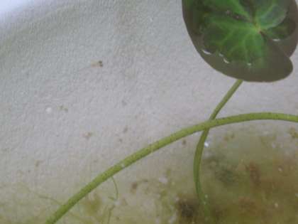 メダカの卵から赤ちゃんメダカが生まれました。この写真の中にいますよ。分かりますか。