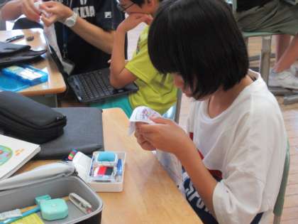 いろいろな縫い方に取り組んでいます。なかなか難しいようで、苦戦していましたが、自分でしっかりやり抜こうとしています。