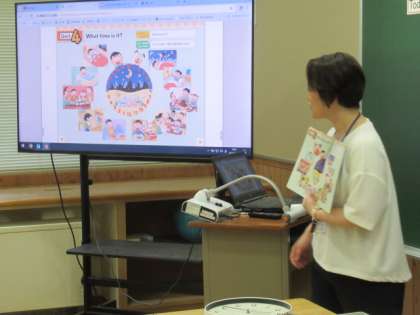 一日の生活の中で、何時に何をしているのかについて、英語で紹介しました。