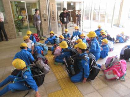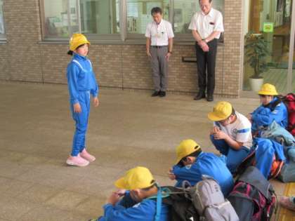 3,4年生の子供たちが元気に出発していきました。これから2日間、みんなで協力して、いろいろな活動をやり遂げましょう。