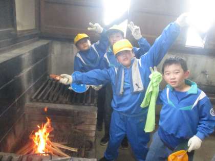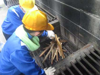 いよいよ薪に火を付けます。上手く火がつきました。大成功。