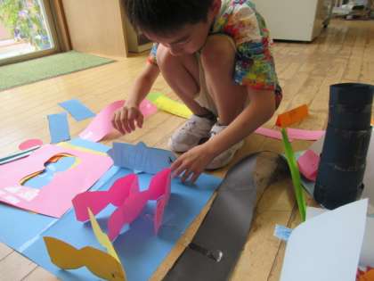 画用紙を折って、立てて、自分の思い描く作品を目指しています。作りながら、だんだん作品の物語が生まれてきました。