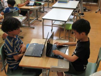 保育園のみんなを迎える交流会が迫ってきました。子供たちは、活動前の係りごとの打ち合わせをしっかり行ってから作業に取りかかります。