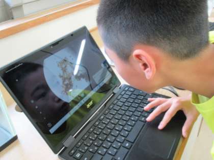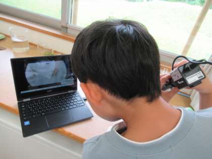 いよいよ顕微鏡を使って観察。さあ、見つかるかな。
