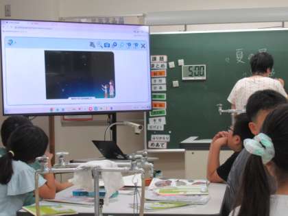 「夏の星」の学習に取り組んでいます。今日は星空の写真を手がかりに、見つけたことや、気になったことについて出し合いました。