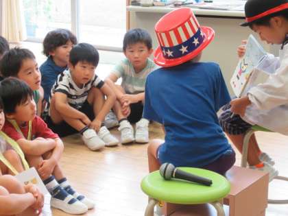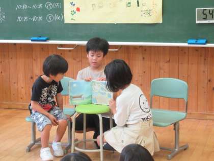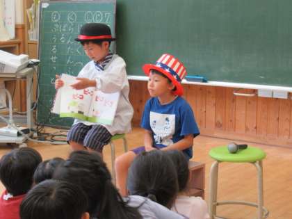 次は、読み聞かせ係の読み聞かせです。これまで練習してきた成果が出ています。みんな楽しそうに聞いています。