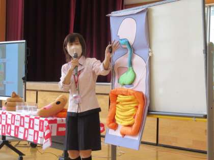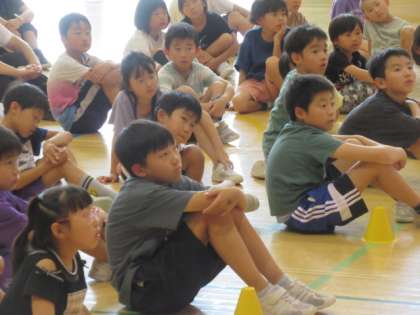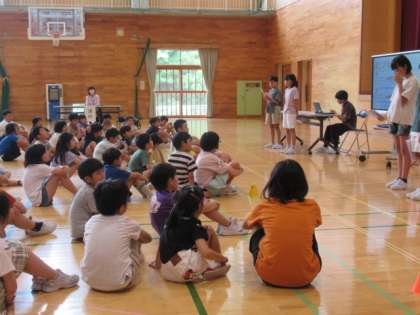 毎年恒例の小中合同学校保健委員会を開催しました。今年度のテーマは「食事マナーをチェック!おいしく楽しい給食にしよう」として、小学校の保健体育委員会から「給食マナーについて考えよう」、中学校の保険美化委員会からは「食に関するクイズ」を発表しました。また、講師の方をお迎えして、「おなか元気教室」というテーマでの講話をしていただきました。お話の中にあった「規則正しく生活する・いろいろなものをしっかり食べる・しっかり運動する」という3つのことは、もうすぐ始まる夏季休業を前に、子供たちにとって大切な話題でした。