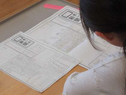 先日行った宿泊学習のことを新聞にまとめています。一人一人の思い出が込められた新聞になっています。