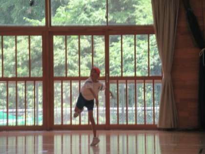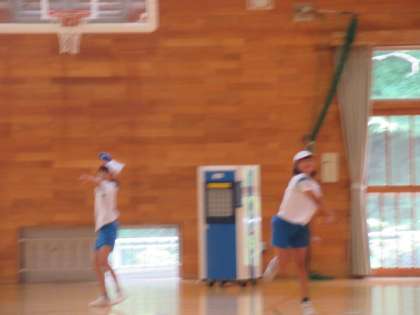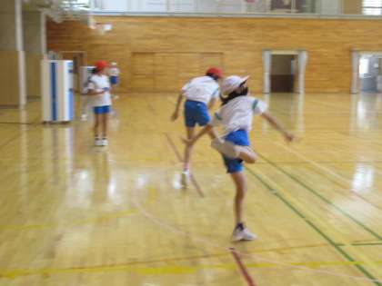 6年生がジャベリックボール投げに取り組んでいました。手首のスナップを上手く使うと、まっすぐに飛んでいきます。