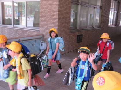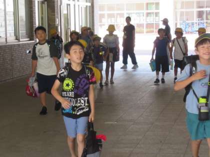 子供たちが帰って行きました。今日も厳しい日差しです。気を付けて帰りましょう。明日は終業式です。