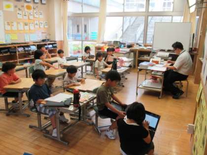 1学期の最終日を迎えました。朝の様子は、いつも同様落ち着いています。4年生では、読み聞かせをしていました。