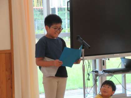 終業式では、代表の児童が1学期の頑張りを発表しました。聞いている子供たちも、自分の姿と重ねているようです。