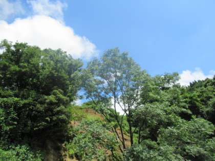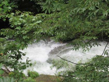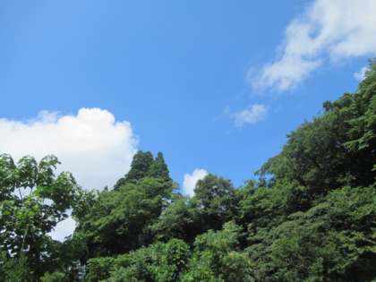 厚い雲に覆われていた朝の空が、今はすっきりとした青空になっています。ただ、川の水は雨が降ったこともあって、いつもよりも多く、流れも速くなっています。気を付けましょう。