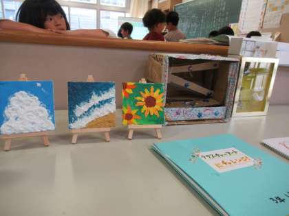 作品応募を確かめたり、友達の取り組んだ自由研究を見合ったりしていました。みんな、いろいろな作品に挑戦しています。