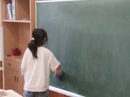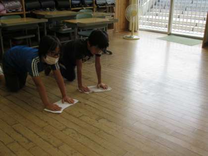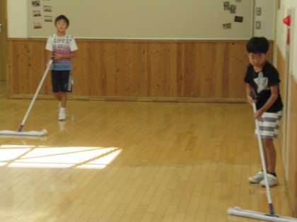 下校前に掃除を行いました。始業式の日であっても、いつもと変わらずしっかり行動しています。