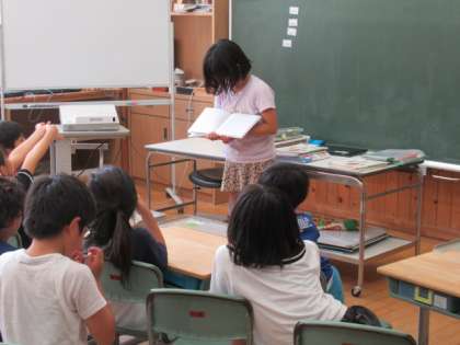 昨日に引き続き、夏休みの取り組みについて一人一人発表しました。聞いている子供たちも、しっかり聞いています。