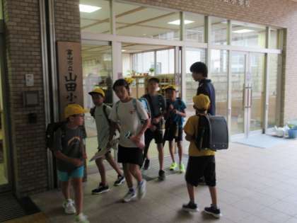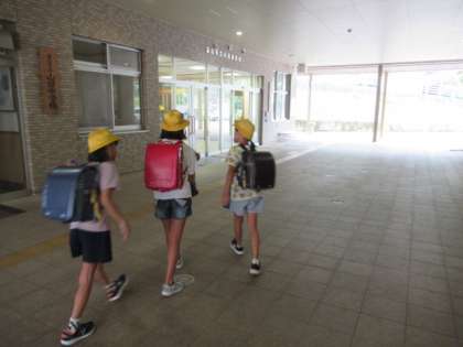 上学年の子供たちが帰って行きます。今日の応援練習では、立派な姿を見せてくれました。明日も楽しみにしていますよ。