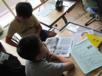公共交通機関を使った校外学習について確かめています。
