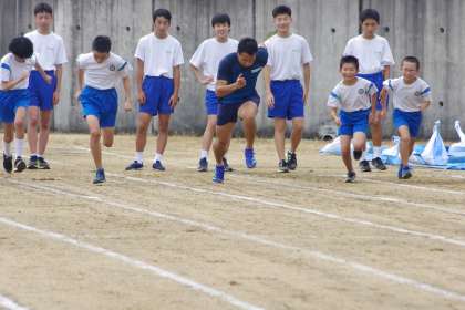 最後に、福島選手と一緒に走りました。その速さに驚く子供たちでした。