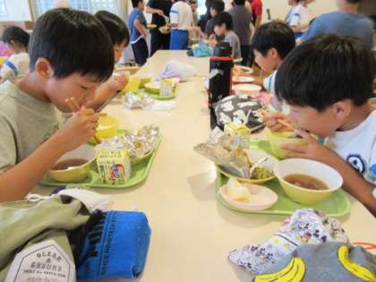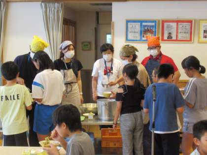 鯖の銀紙焼き。甘めの味噌がおいしかったのでしょう。ご飯が、どんどん進むようでした。冬瓜のスープも、たくさんの子どもがおかわりをしていました。