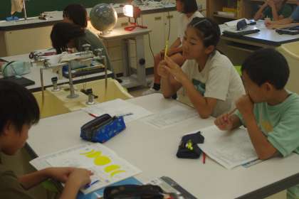 月の形の変化について確かめています。