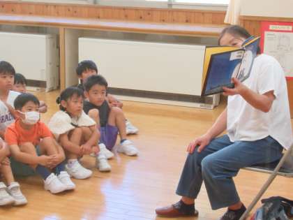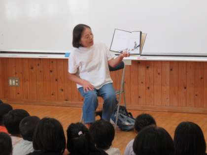 今日は下学年の子供たちを対象とした読み聞かせを行いました。ボランティアの方の読み聞かせに引き込まれいく子供たちです。