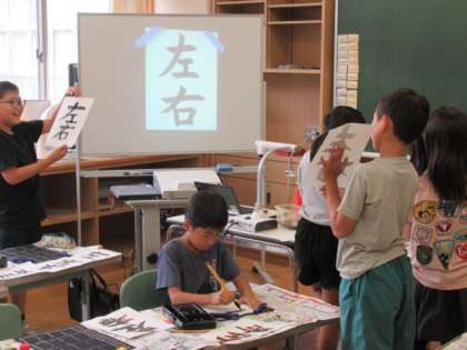 「左右」という文字に取り組んでいます。文字のバランスをとるのに苦戦していました。
